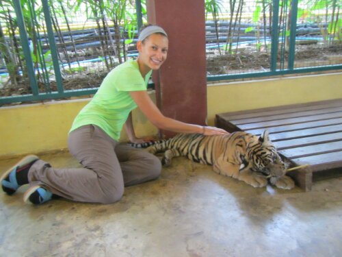 1. I just love seeing my little sister petting TIGERS!!! Woah! Amazing! Keep the details coming!! Love you!