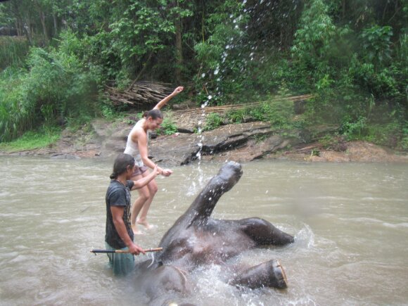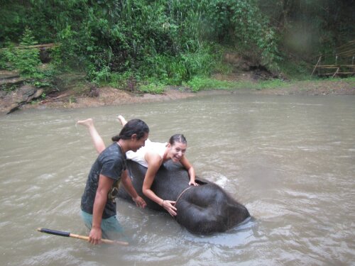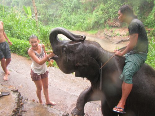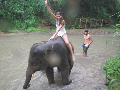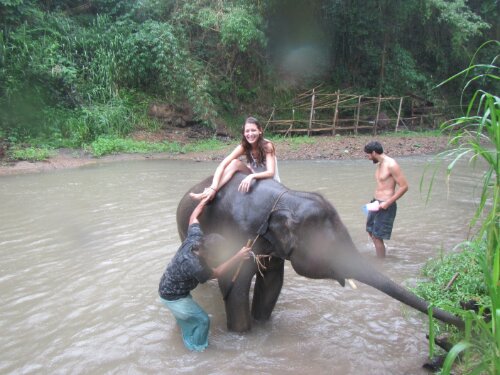 I rode a baby elephant in a river. Did I forget to mention I bathed him in the river and got to jump and stand on him? To top it off it was raining which made it so much cooler. We got a lot of time with the elephant because all the other tourist didn’t want to get wet. They missed out majorly! I think they had fun watching us try to balance on the elephant and of course falling into the water.