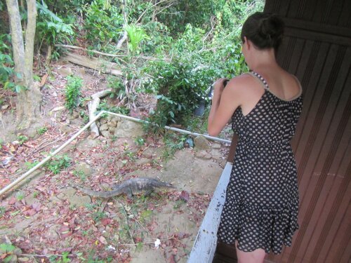 He was nice enough to walk me back to my place at the end of the night. On our way a British bicyclist almost hit me. It was a couple and the guy had crutches in his arms as he rode his bike drunk. I insisted I help him and took the crutches so he wouldn’t crash and burn. Artur followed suit and took over the girls bike as I walk with her arm in arm so she wouldn’t fall over. They actually lived on the island, so we went far inland to find a pretty nice home. They were super appreciative and they insisted we have a glass of wine and an aperitif. We sat and talked for an hour. Oh and they had two cats (blah!) One had a big scar that was still healing. A monitor lizard had attacked it.