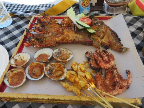 We stayed at Banjangi Villas, which was nice except for the sewage stench that would come and go. It was a Sunday and we happened to stumble upon Single Fin, which it goes off on Sunday nights. We came straight from the beach. We ran into 2 people that M&M met on their flight to Bali.