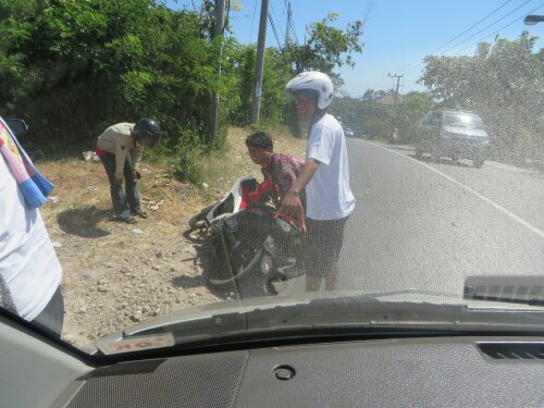From Seminyak we took a private van to Uluwatu. On the way there our driver bumped a motor bike and we had to stop to see if the drivers were OK. Luckily no one was hurt. The driver gave them money and we were on our way.