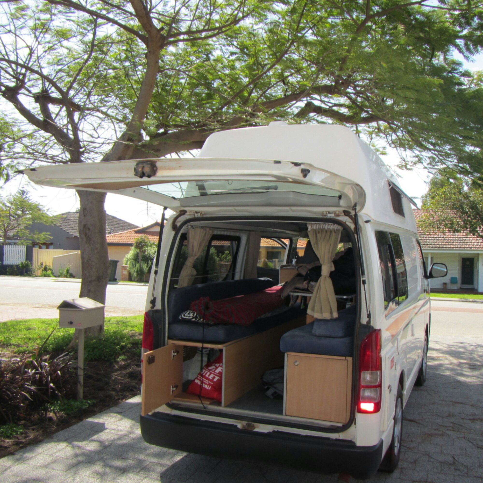 Even though rain was in the forecast we decided to embark on our road trip with our hippie camper. $97/ day to rent this camper was the best price we could find for a good vehicle. It has a sink, fridge, microwave and gas stove.