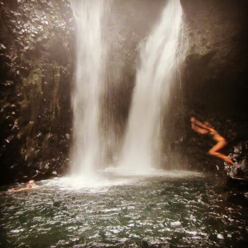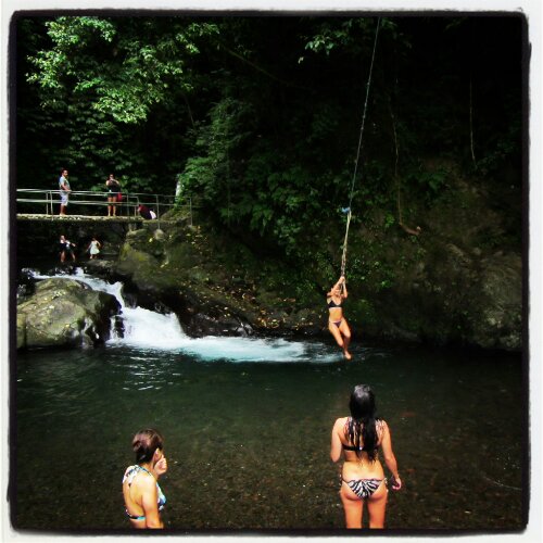 We all jumped into the twin waterfall. It was so refreshing. Then we all swung on a Tarzan rope.